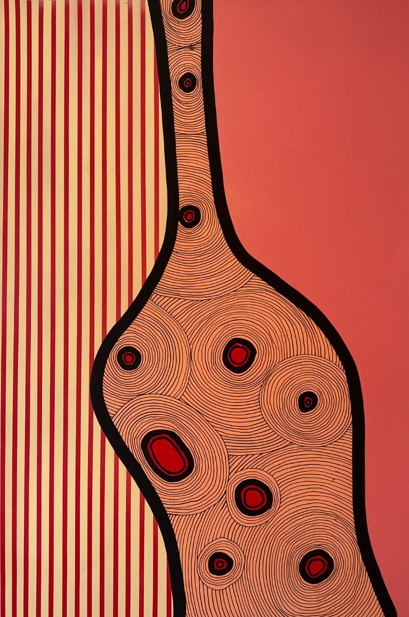 Acrylic spray paint, acrylic paint markers, archival ink pens on Shizen paper