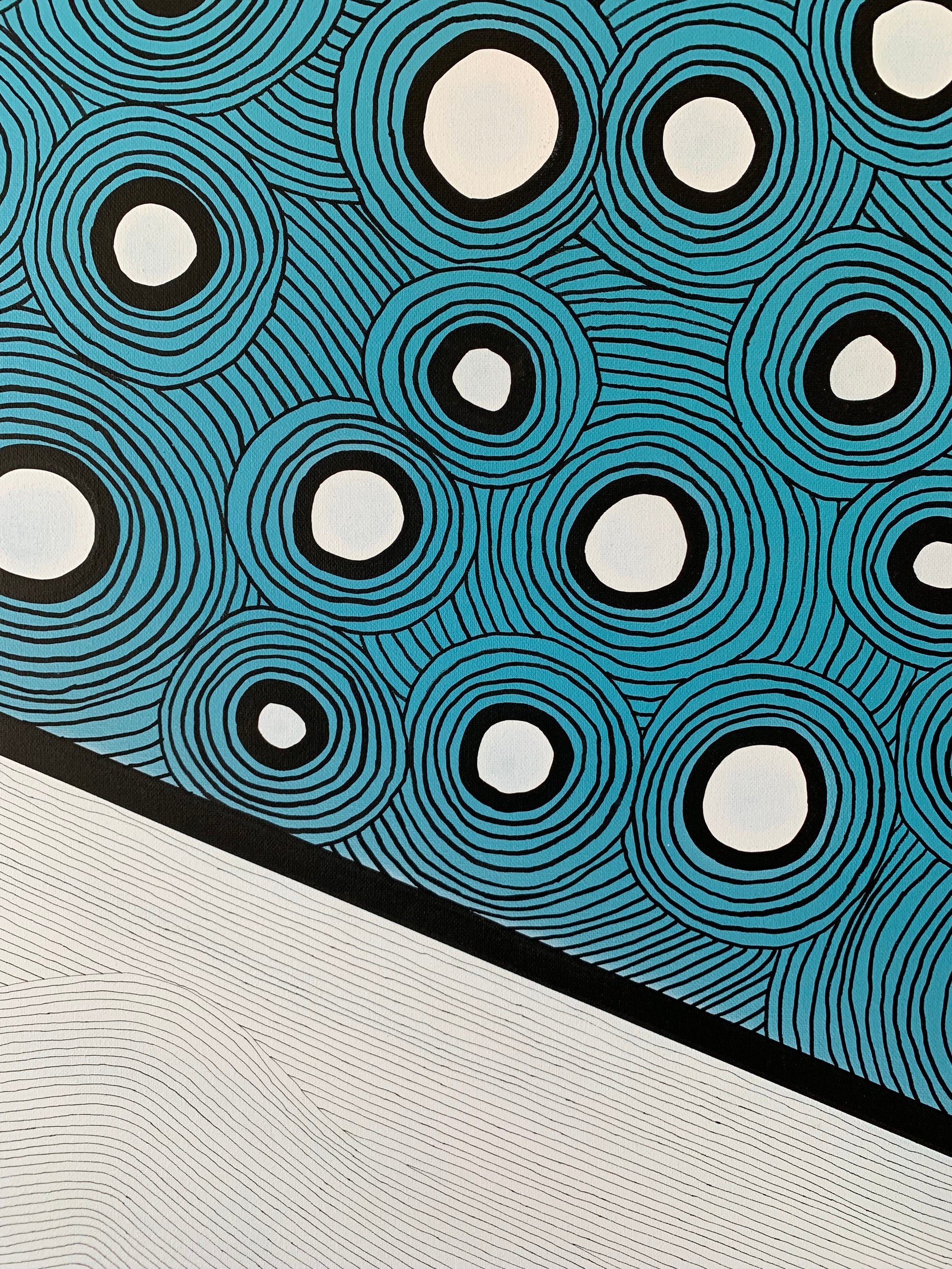Acrylic spray paint + paint markers + archival ink pens on canvas