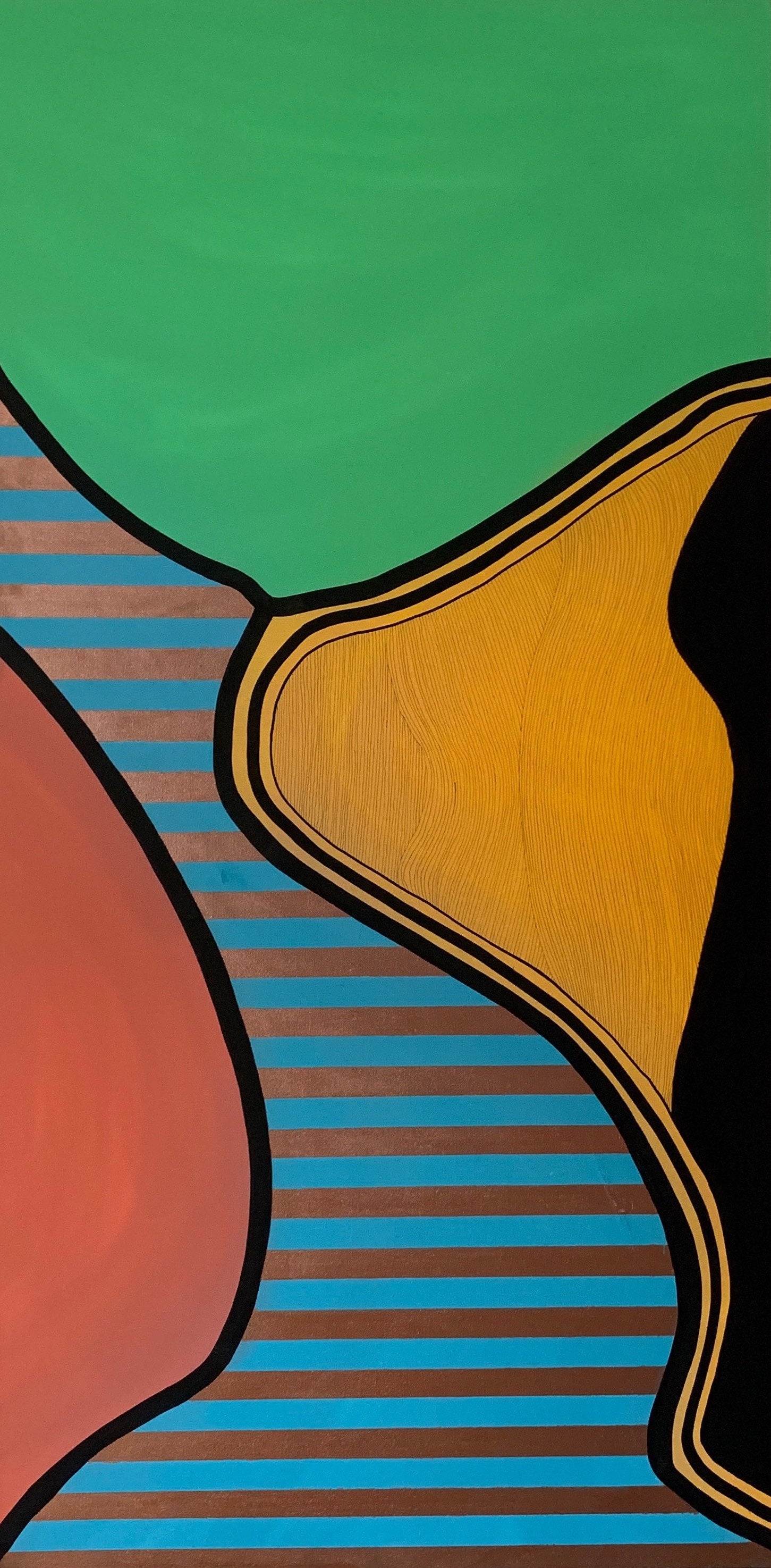 Acrylic spray paint, acrylic paint markers, archival ink pens on Shizen paper