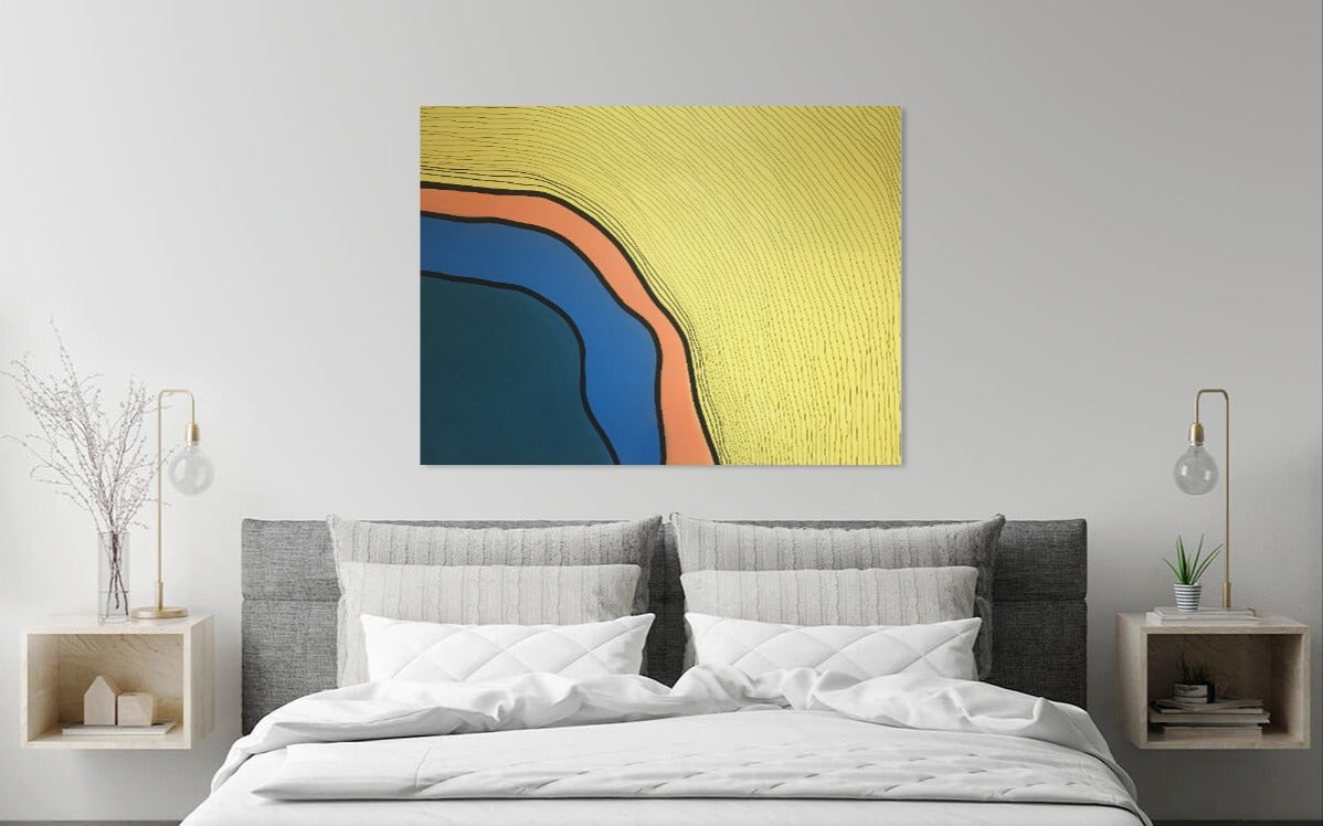 Materials: Acrylic spray paint, paint marker, and archival ink pen on gallery wrapped canvas