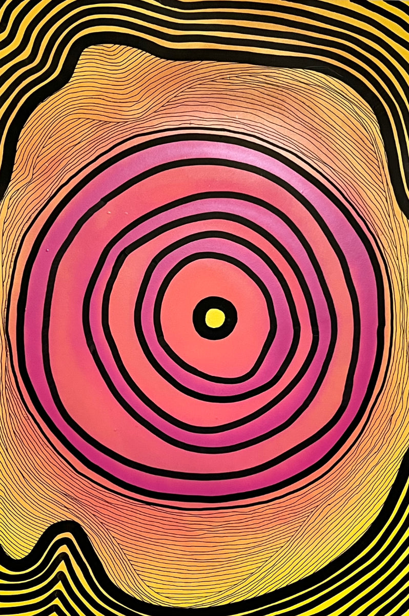 Acrylic spray paint, acrylic paint markers, archival ink pens on Shizen paper